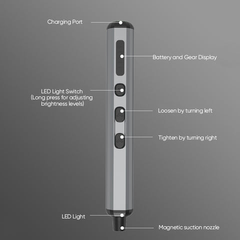 - Mini and portable design: The mini electric screwdriver has the shape of a pen. The handle has a circular surface, which makes it difficult to slip, which makes the electric precision screwdrivers better under control during the work and the grip is more comfortable. Both the cover and the handle of the screwdriver are made of gray aluminum alloy.