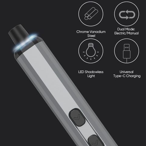 - Mini- a portable design: the shape of our mini electric screwdriver looks like a pen. The handle has a circular curved surface and does not slide easily, which gives you better control over the electric precision screwdrivers during work, while making the grip more comfortable.